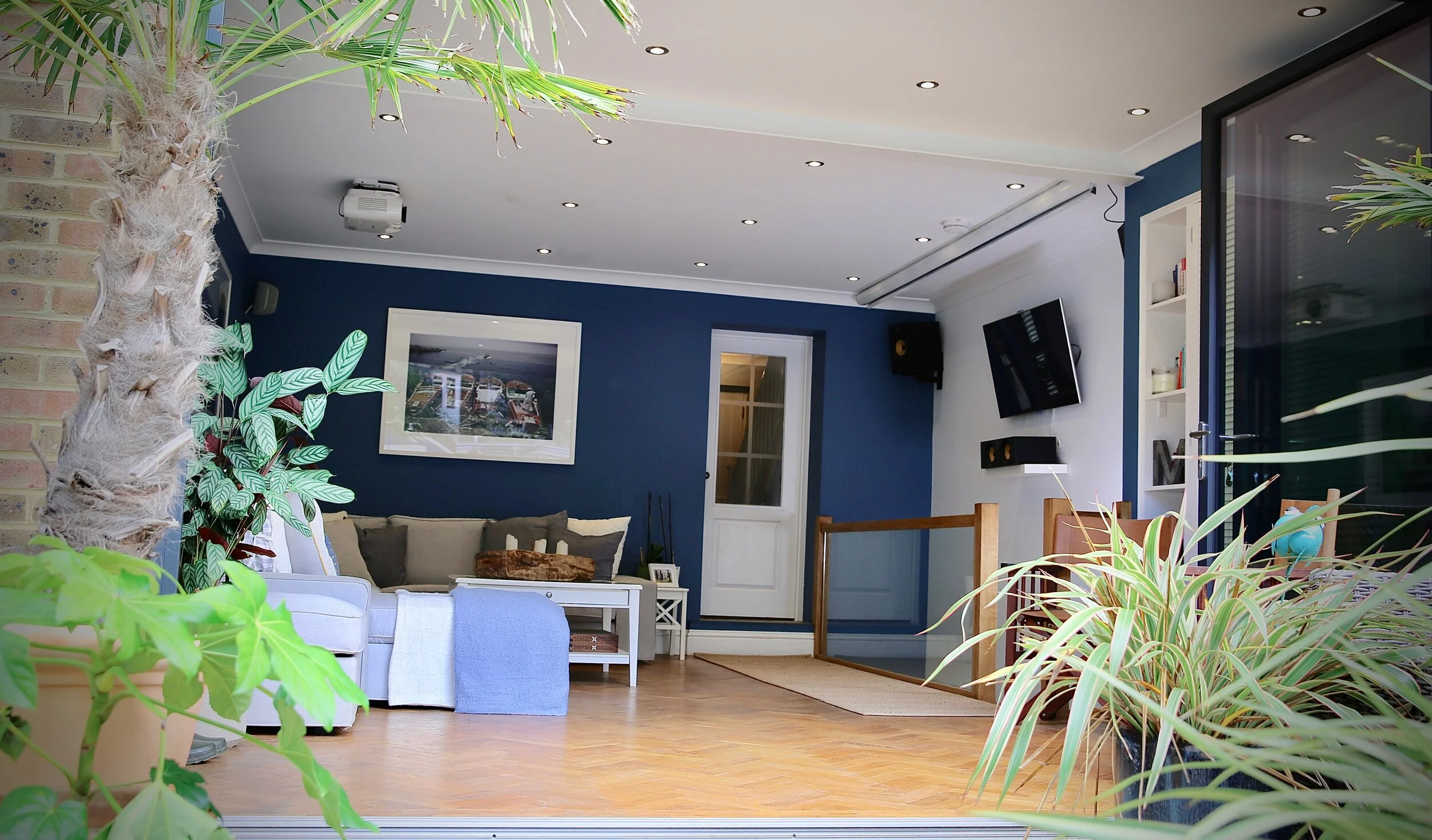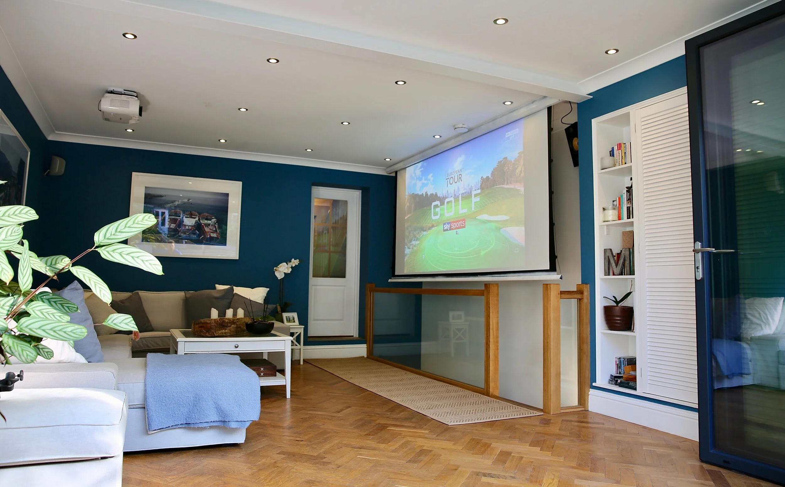 Projector, electric ceiling screen, Netflix & digital movie library & high-spec surround sound system
